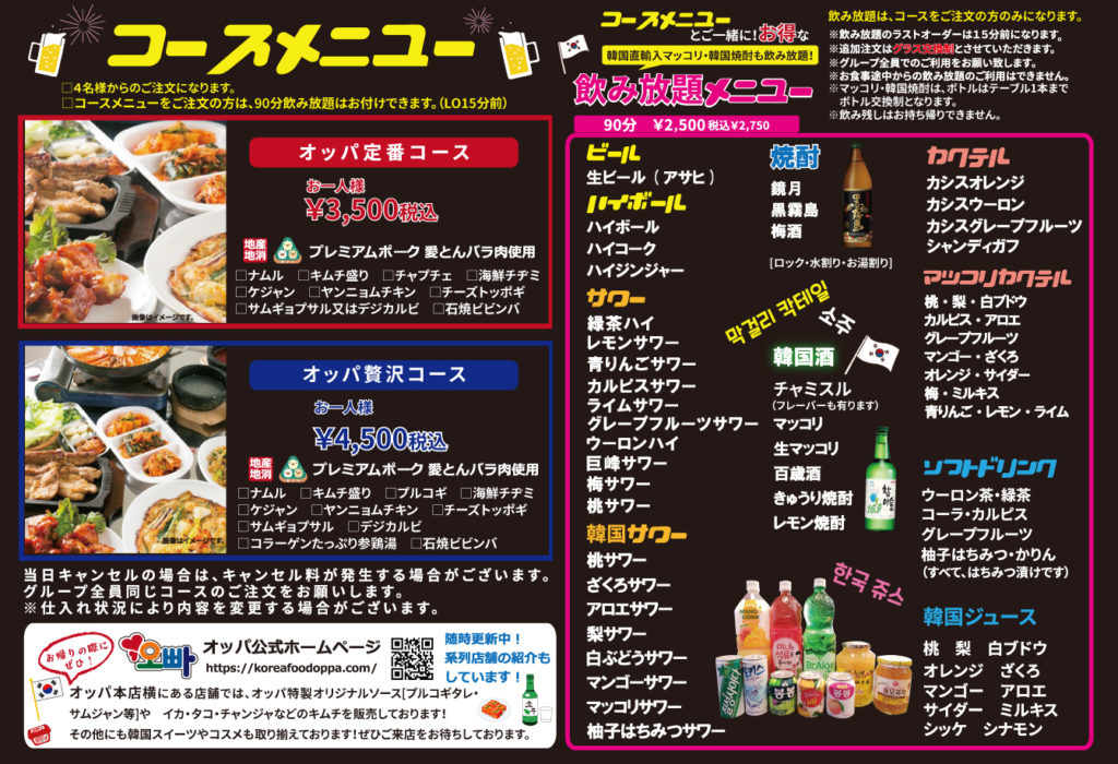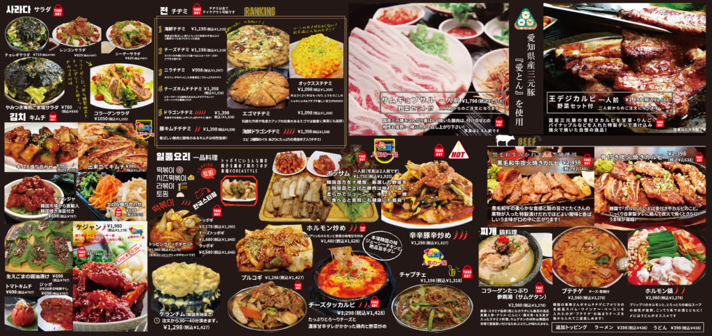 あいとんブランド豚を使用!サムギョプサルやデジカルビは、独特の甘みと弾力があり一度食べたらヤミツキになること間違いなし!!店内は気軽に楽しめるテーブル席と寛ぎのお座敷掘りごたつ席をご用意!少人数のお客様から大型宴会まで幅広くご対応致します!!コースメニューはおひとり様3,500円税込♪♪特製キムチはもちろん、グランドメニューで使用する秘伝のタレは果物・野菜も何種類も合わさった自家製のものを使用しております。